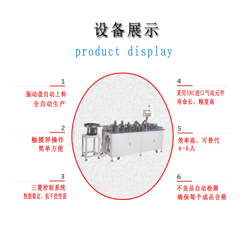 4:人工隻需補充物料,設備自動依次完(wán)成各工序組裝,並自動下料