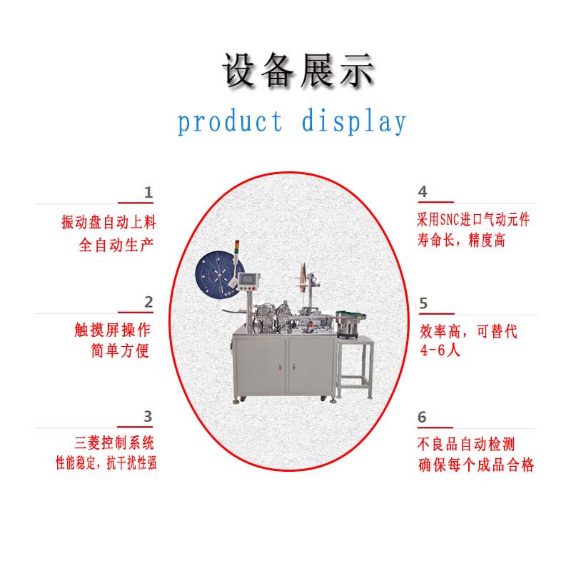 4:人工隻需補充物料,設備自動依次完成各工序組裝(zhuāng),並自動下料
