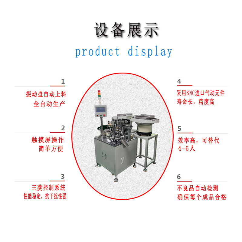 4:人工隻需補充物料(liào),設備自動依次完(wán)成各工序組裝,並自動下料