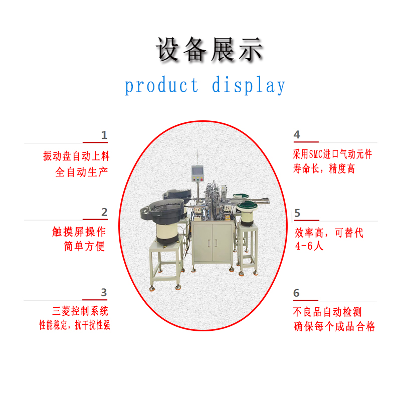 4:人工隻需補充物料,設備自動依次完(wán)成(chéng)各工序組裝,並自動下料
