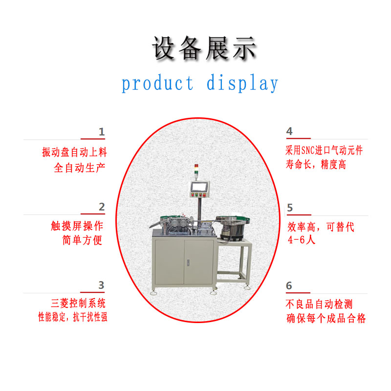 4:人工隻需補(bǔ)充物料,設備自(zì)動依次完成各工序組(zǔ)裝,並自動下料
