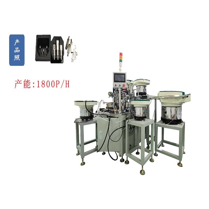 1:AC插座自動鉚(mǎo)PIN劈腳機采用氣缸為動力,PLC可編程控(kòng)製器,直觀分站式裝配工作原(yuán)理