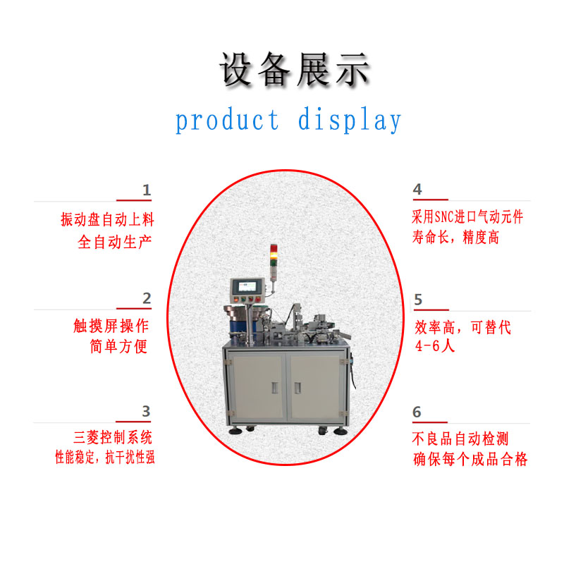 4:人工隻需補充物料,設備(bèi)自動依次完成(chéng)各工序組裝,並自動下料