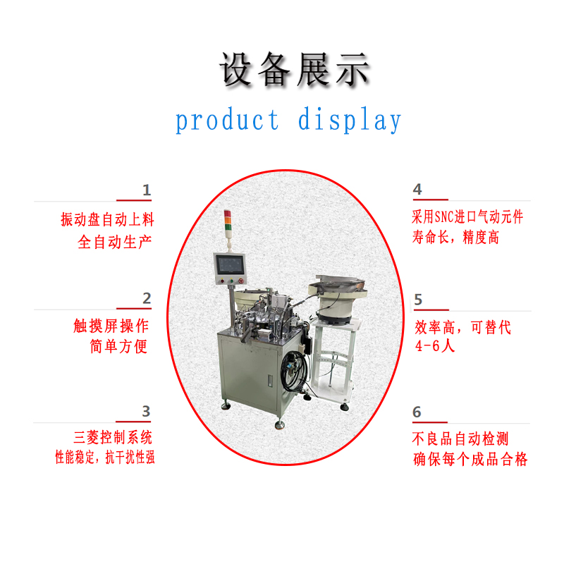4:人工隻需(xū)補充物(wù)料,設備自動依次完成各工序組裝,並自動下料